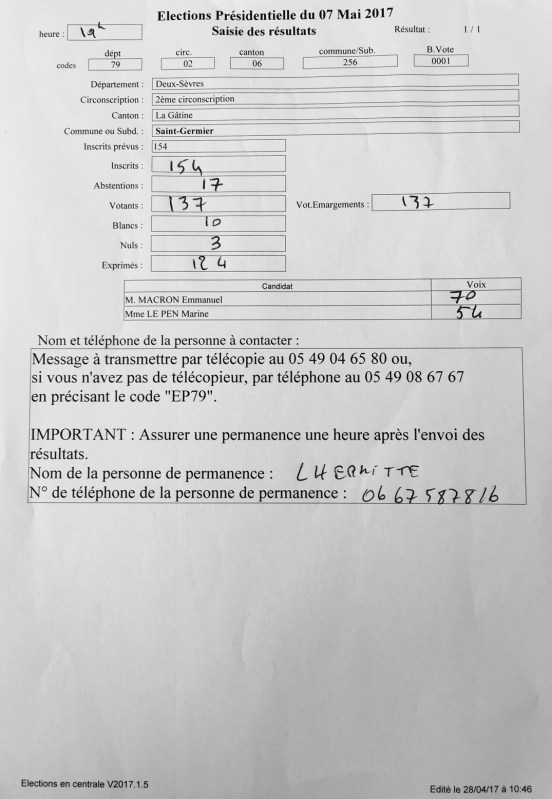Vous trouverez ci-dessous les résultats du second tour de l’élection présidentielle pour la commune de Saint-Germier. Monsieur Emmanuel Macron arrive en tête avec 70 voix sur 124 exprimés et Madame Marine Le Pen récolte 54 voix. La commune comptabilise également 10 votes Blancs et 3 Nuls.