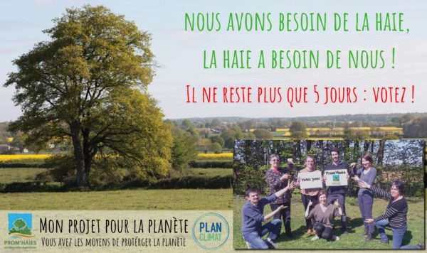 Le projet de Prom’haies s’appelle ici Invent’Haies : des inventaires participatifs du patrimoine arboré de 5 communes bocagères. Aidez-la en votant pour son projet grâce au lien suivant : http://urlz.fr/6W8W