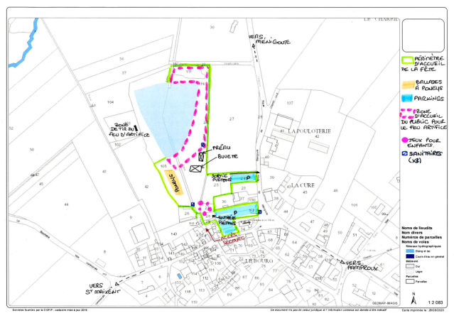 Des flacons de gel hydroalcoolique seront installés sur différents points du site ainsi qu’un rappel des règles sanitaires. Le port du masque sera obligatoire lors du feu d’artifice qui sera tiré en soirée. Le plan des animations figure ci-dessous avec également les ENTRÉE et SORTIE mises en place pour le feu d’artifice seulement comme souhaité par les services préfectoraux.