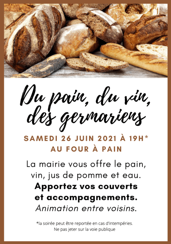 La fête du pain organisée pour la première fois en 2020 fait son retour à Saint-Germier. Les germariens sont attendus samedi 26 juin dès 19h au four à pain dans le coeur du bourg pour une soirée entre voisins.