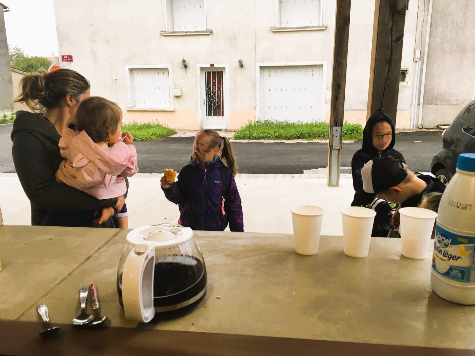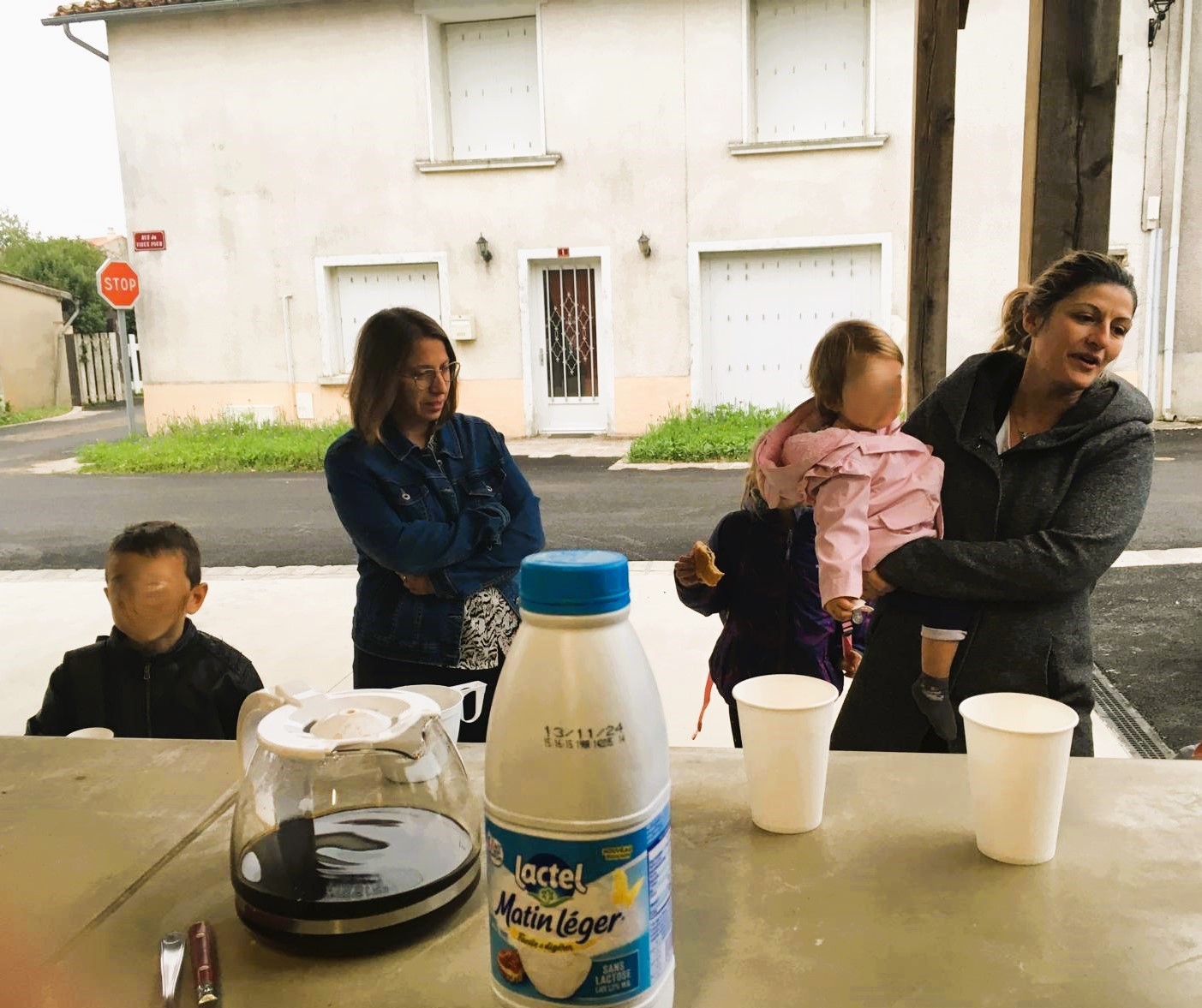 Ce petit-déjeuner est une nouvelle expérience pour nous et nous recommencerons. L’idée serait que les familles qui attendent le car scolaire du primaire (ndlr : l’arrêt de bus du collège se situe route de Ménigoute et non rue de l’église) puissent le faire autour d’un café qu’il est possible de préparer dans le bar de la halle. Cette halle, elle appartient aux habitants : elle a été faite par eux et pour eux. Et s’ils veulent poursuivre cette expérience, en autonomie, nous ferons notre possible pour les y aider.