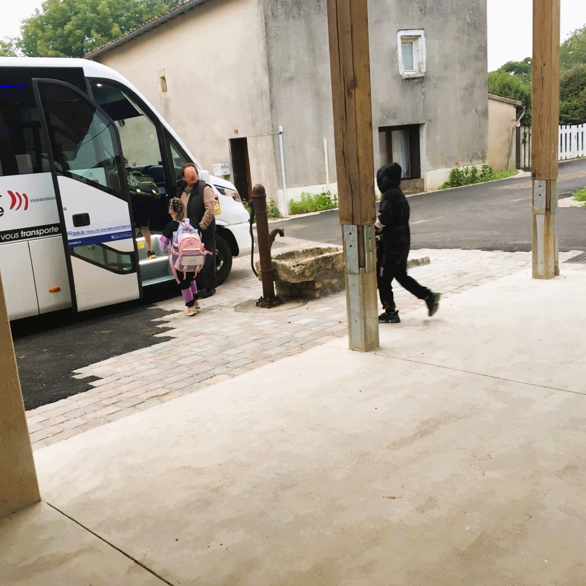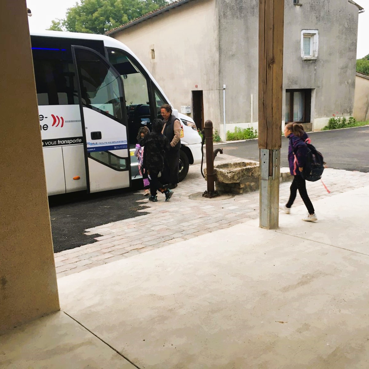 Hier matin, mercredi 18 septembre, dès 8h, Yvette et Jean-François, respectivement conseillère municipale et maire, attendaient les parents des élèves du primaire et leurs enfants à l’arrêt de bus sous la halle et dans l’attente du car scolaire, pour un petit déjeuner – café, chocolat chaud, jus d’orange, croissants et chocolatines – offert par la commune. Ce rendez-vous inédit s’est fait sous l’impulsion de l’édile qui souhaite ainsi amener les familles à s’approprier ce nouveau lieu de vie, en plein coeur du bourg :