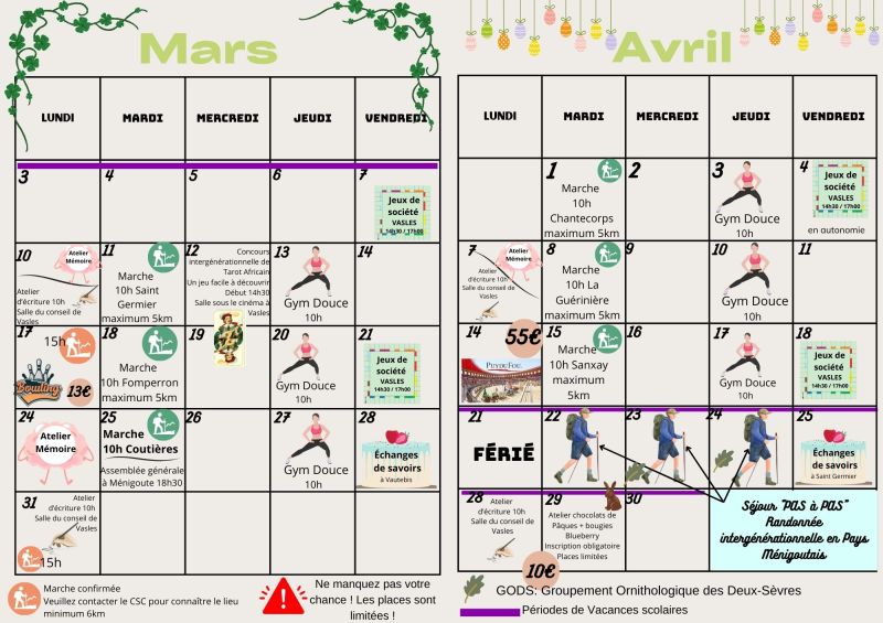 Si vous voulez vous inscrire ou avoir plus d’informations, contactez le 05.49.69.93.13 ou le 07.61.70.22.15.