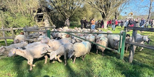 Les moutons avaient été parqués la veille sur un terrain mitoyen au parc, facilitant ainsi l’organisation et la sécurité. Les visiteurs, venus nombreux, ont pu stationner à proximité et profiter du site, du petit-déjeuner et du soleil. Une belle opération, fédératrice et qui valorise notre territoire et notre patrimoine, que les élus souhaiteraient pouvoir reconduire l’année prochaine. A suivre !