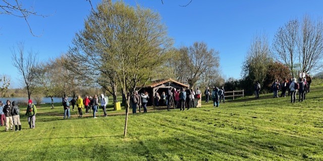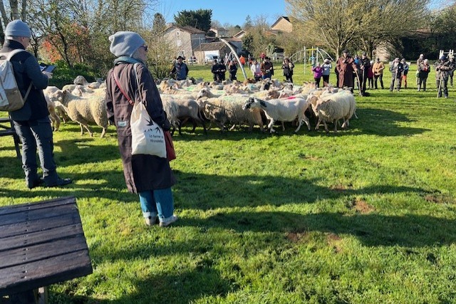 La grande transhumance de Mouton Village est partie le samedi 29 mars depuis le parc de l’étang de Saint-Germier. Un joyeux cortège s’est élancé pour 30 kilomètres de marche ponctués de ravitaillements : cafés et croissants servis le matin sous la halle germarienne par nos deux précieuses bénévoles, Yvette BRENET et Evelyne DAVID, puis des pots ont été offerts tout au long du parcours par les communes d’escale. Les chiens – surtout des border collies – ont aussi été de la fête, veillant sur les troupeaux avec attention.