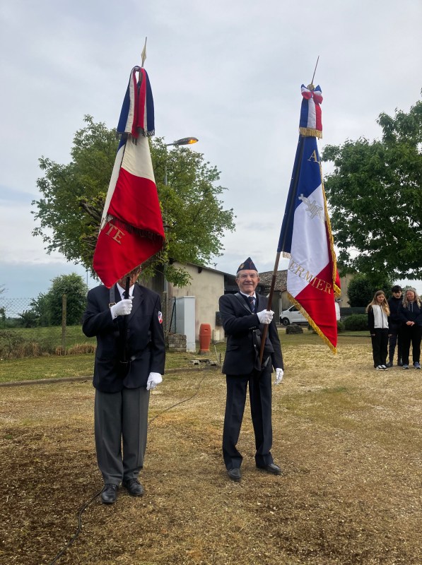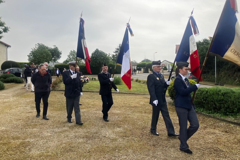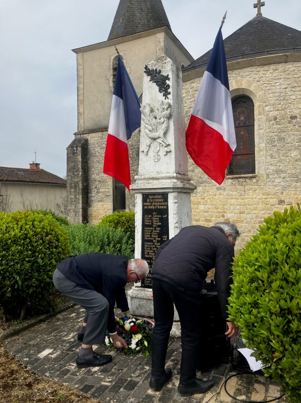 La commémoration des 80 ans de l’armistice de la seconde guerre mondiale s’est tenue hier à 10h devant le monument aux morts, sur la place de l’église de Saint-Germier. La délégation des anciens combattants a porté les drapeaux jusque devant le monument devant lequel Monsieur le maire, Jean-François Lhermitte, a ensuite prononcé le discours officiel. La gerbe a été déposée au pied de la stèle puis une minute de silence a été observée. Le nom des soldats et les hymnes du chant aux morts et de la Marseillaise ont enfin résonné dans le village. La commémoration s’est suivie d’un vin d’honneur à la salle des fêtes.