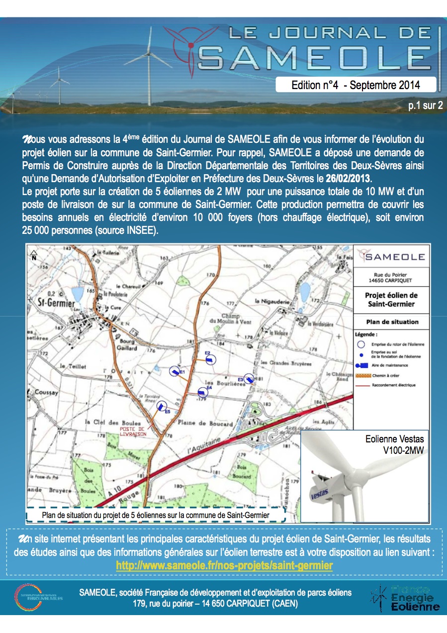 Les prochaines dates de l’enquête publique sur le projet de parc éolien se tiendront en Mairie de Saint Germier le : – Samedi 20 septembre 2014 de 9h à 12h, – Mercredi 1er octobre 2014 de 9h à 12h, – Jeudi 9 octobre 2014 de 14h à 17h, – Jeudi 16 octobre 2014 de 14h à 17h. Pour […]