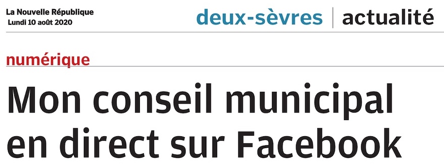 La démarche de communication et d’ouverture de la commune est mise en avant dans les pages départementales du journal la Nouvelle République qui est paru hier, lundi 10 Août. Monsieur le maire est en effet interrogé par la journaliste sur la question spécifique des conseils municipaux diffusés en direct grâce à l’application Live proposée […]