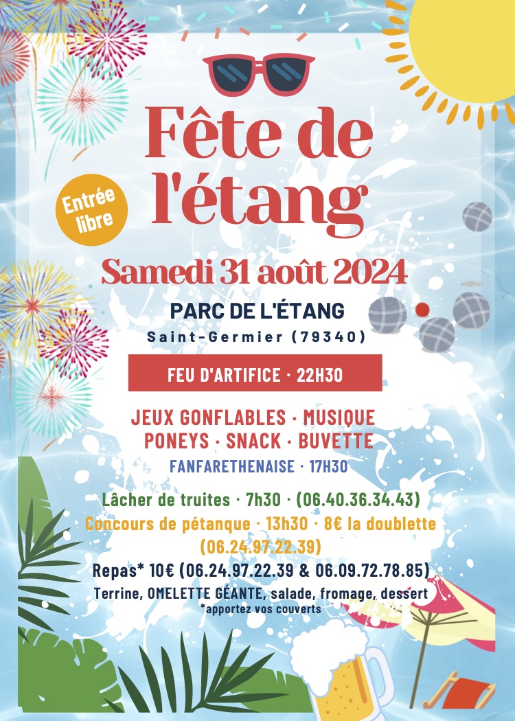 La fête de l’étang de Saint-Germier se tiendra samedi 31 août avec plein d’animations gratuites et un feu d’artifice tiré à la nuit tombée !