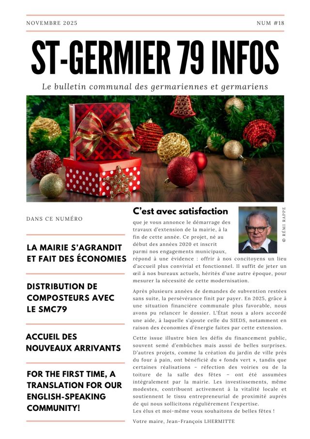 Les élus du Conseil municipal souhaitent de joyeuses fêtes pleines de chaleur et de partage, exprimant leur gratitude pour la solidarité de la communauté et adressant des vœux pour l’année à venir.